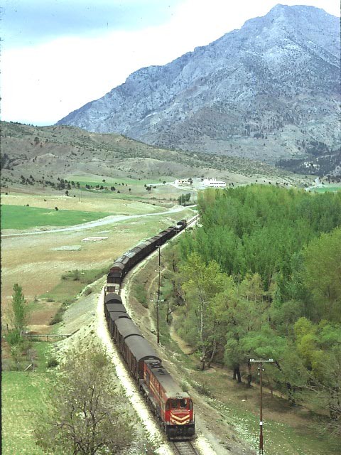 DE24000 on a northbound freight leaves Posantı amidst the Taurus mountains. 13 April 1975 |
