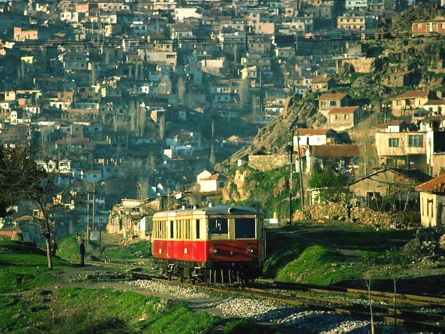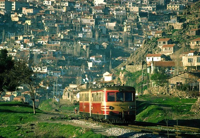 Southbound DMU MT5300 near Korgan (north of Cankiri) 30th March 1974 |