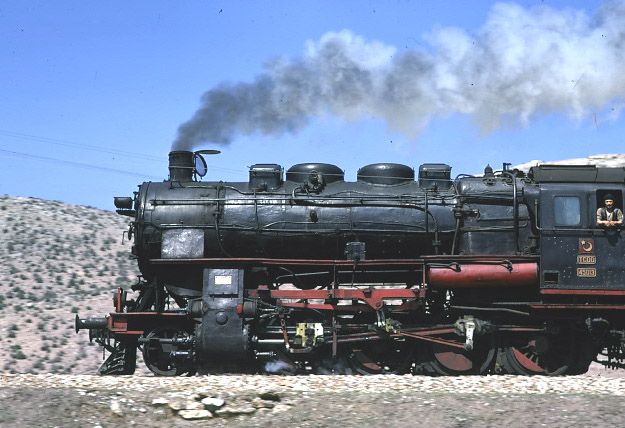45013 north of Amasya 31 March 1974. Detail shot of the G8/2 as it passes north of Amasya |