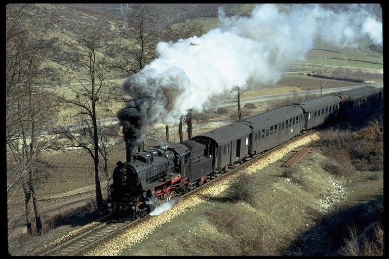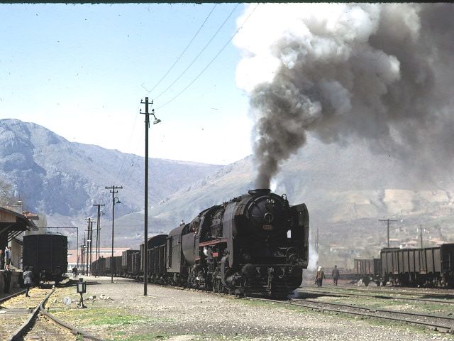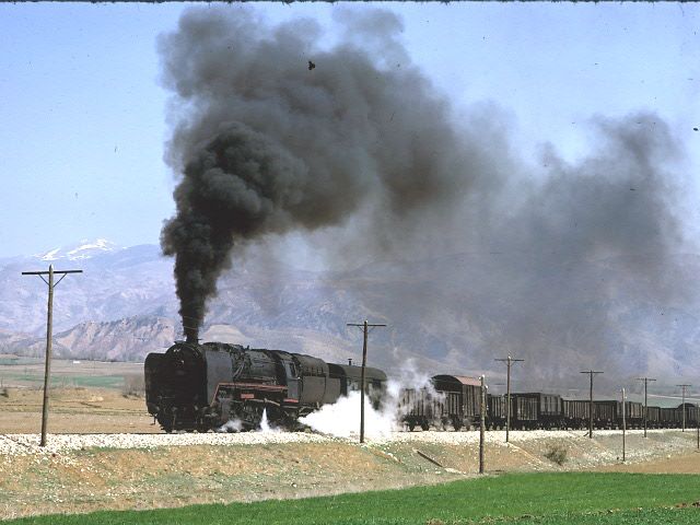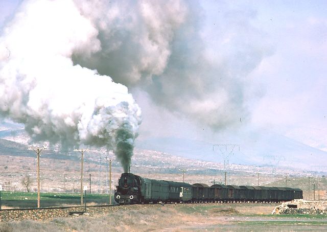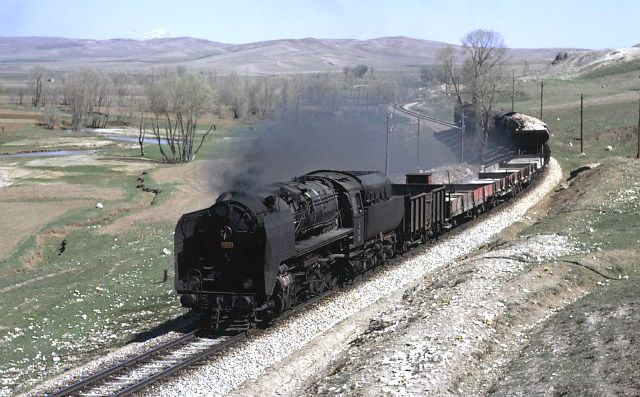 56000 west of Yildizeli 9 April 1975. A stretch of line where the road and railway were in close proximity led to many similar pictures |