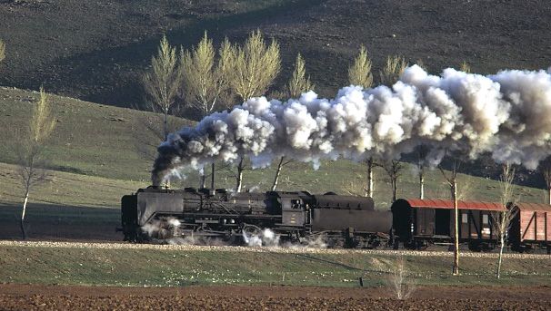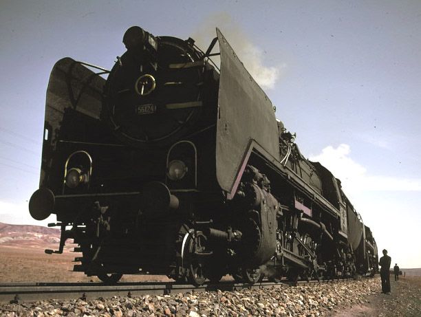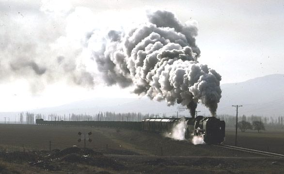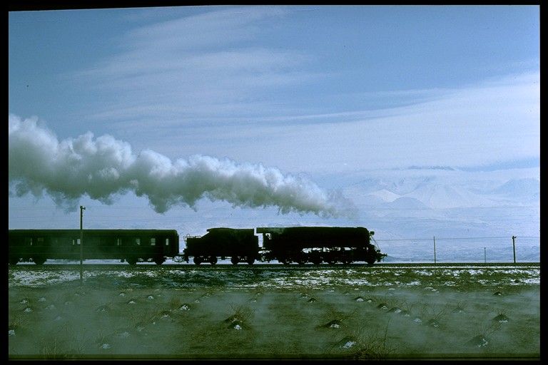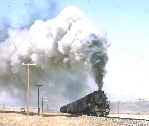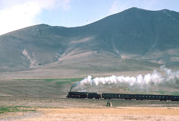 56166 + 45214 west of Yildizeli 9 April 1975. The S160 was an oil burner and was clearly being used to great photographic effect |