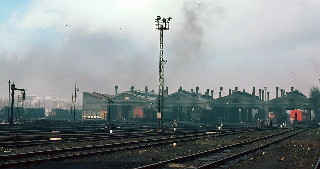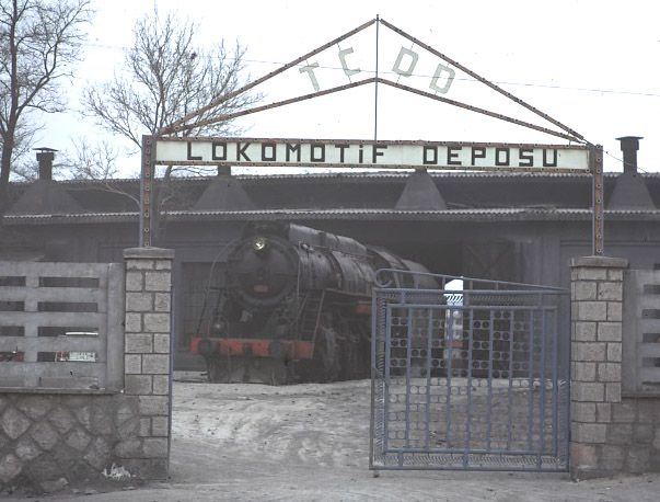 General view of Sivas shed 15 March 1977. A solitary view of a fairly empty Sivas engine shed was taken before we set off after the Samsun train |