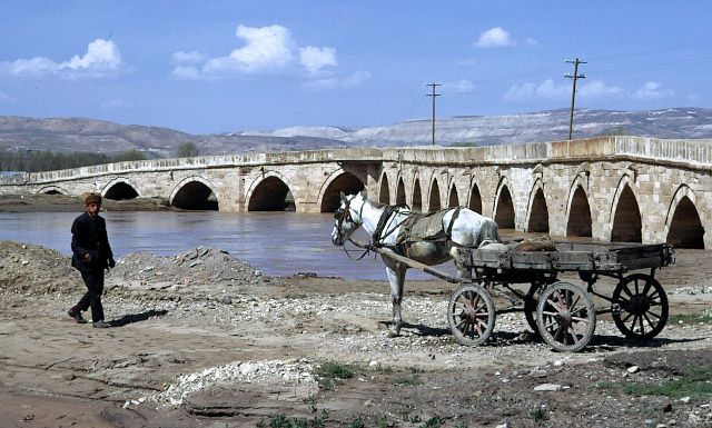 13576 Bridge near Sivas with horse and cart 9 April 1975 An alternative form of transport which was very common in those days. Not very nice to meet in the dark. |