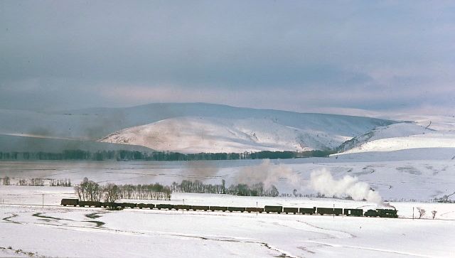 After heavy overnight snow, a Nohab 2-8-0 45053 heads a Samsun train near Kalın 15 March 1977 |