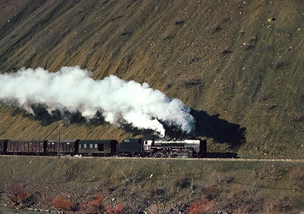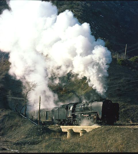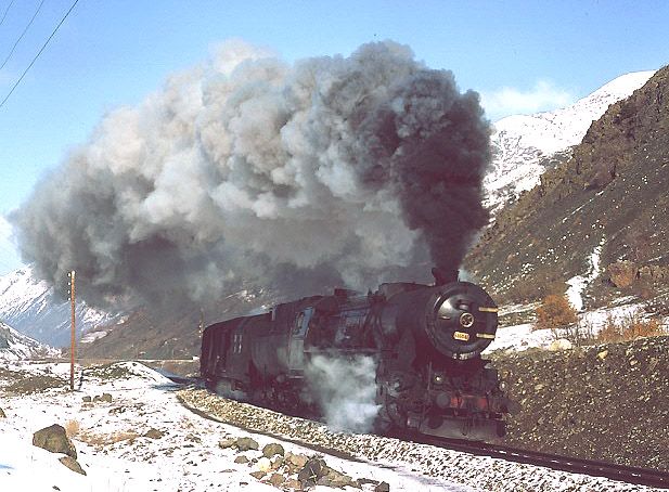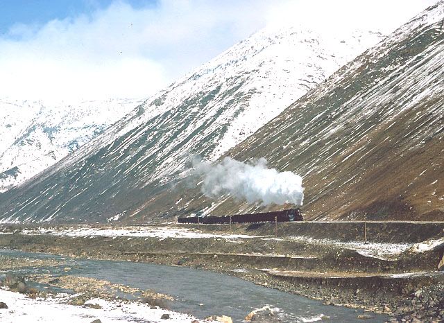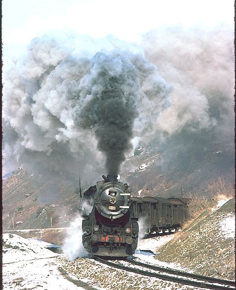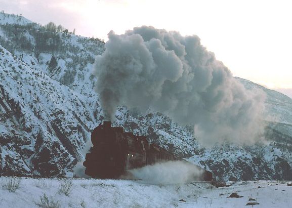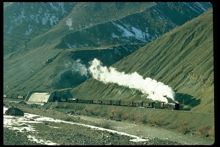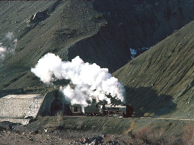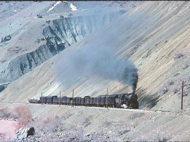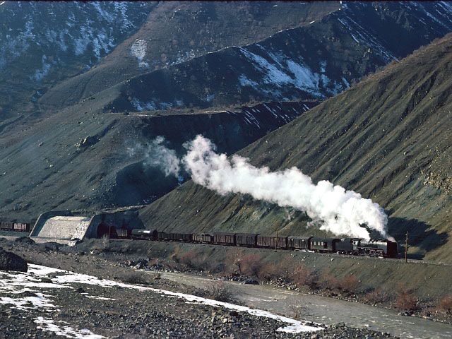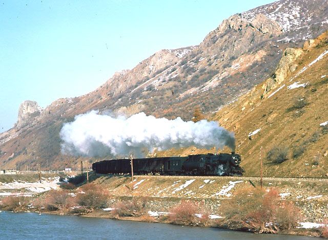45055 east of Erzican 26 March 1976. Towards the end of the day we were heading west from Erzurum when we came across this eastbound Nohab 2-8-0 climbing through the Euphrates gorge |
