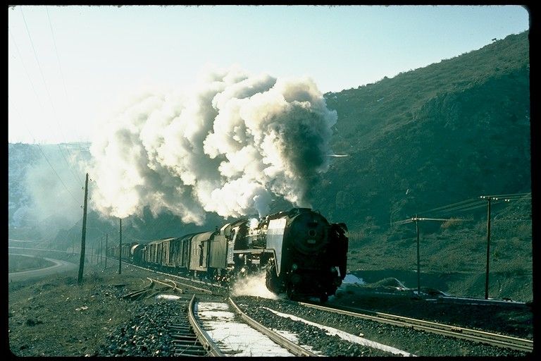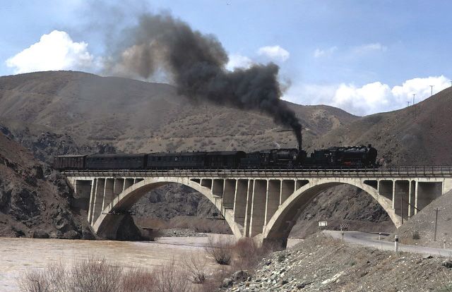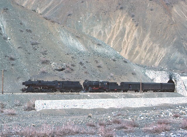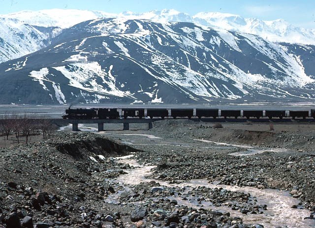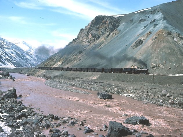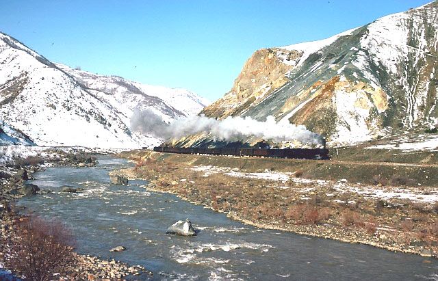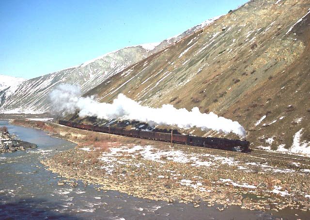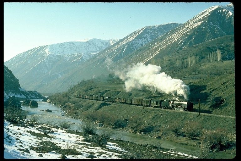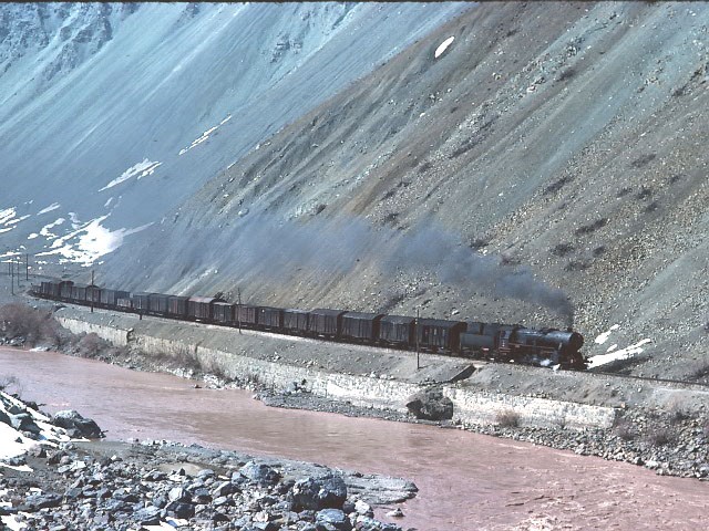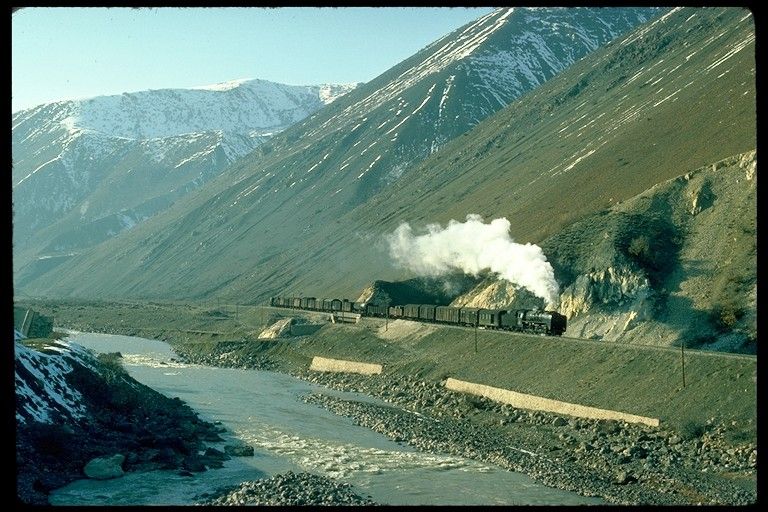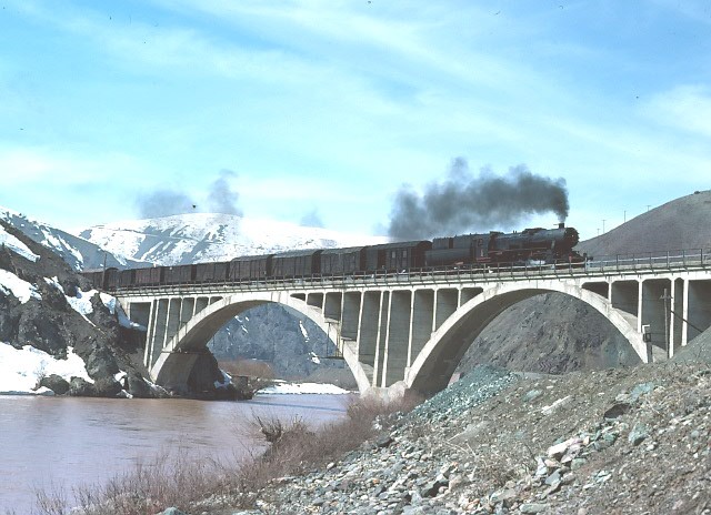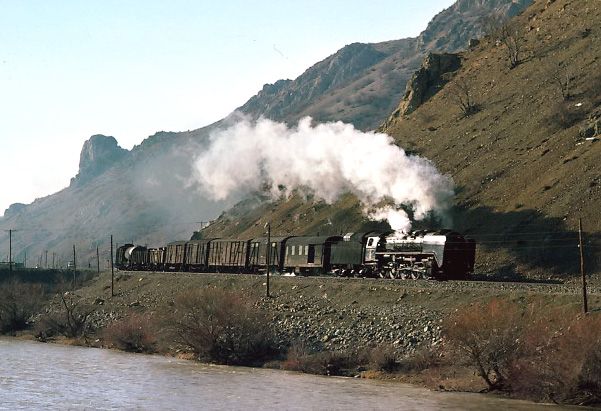 56032 +56000 near Erzincan 10 April 1975. A pair of Henschel 2-10-0 heading up the Euphrates gorge |