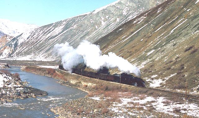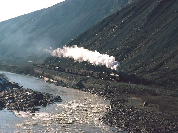 The chase continues as 56067 struggles against the grade alongside the Euphrates en route to Erzurum |