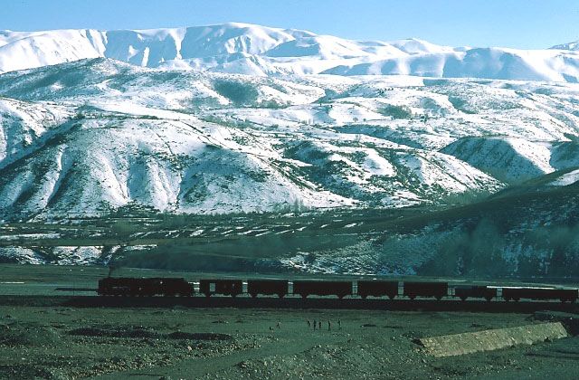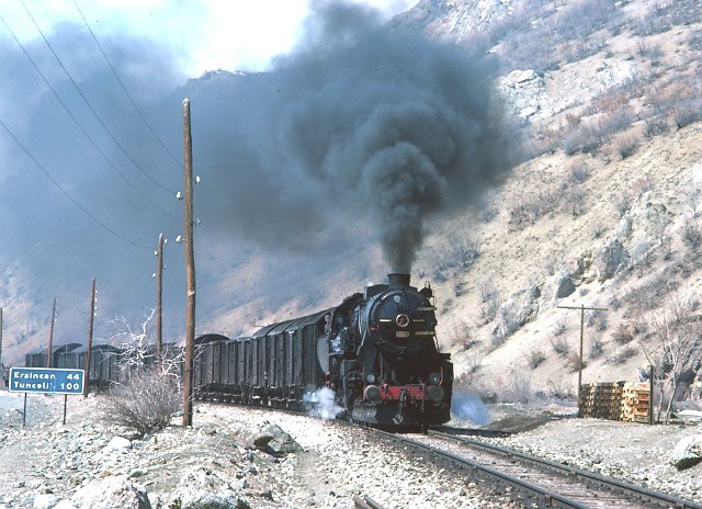56542 east of Erzincan 27 March 1976. After a couple of hours photographing old Erzincan a train finally appeared |