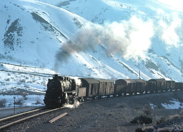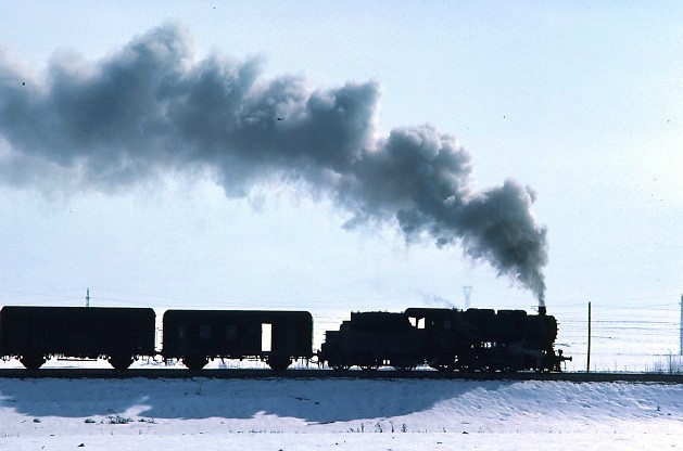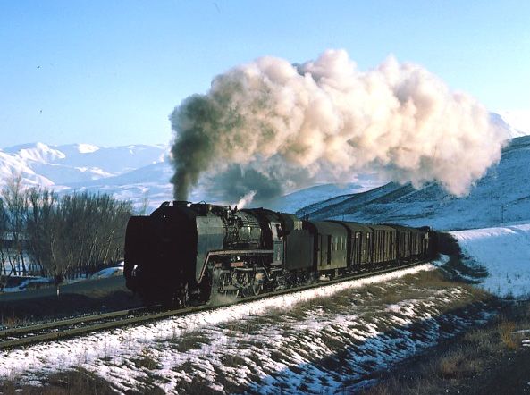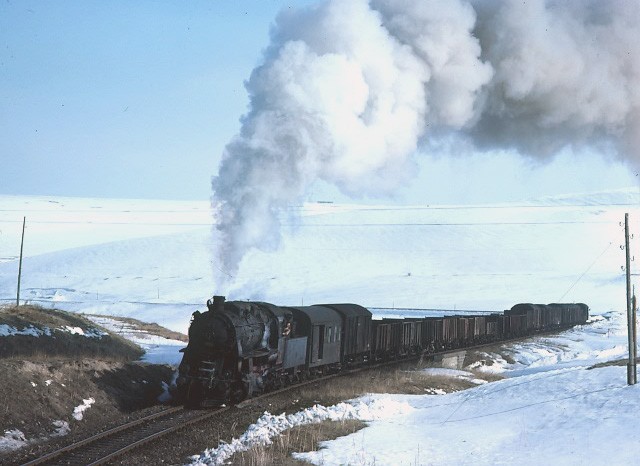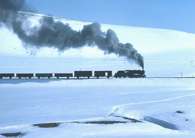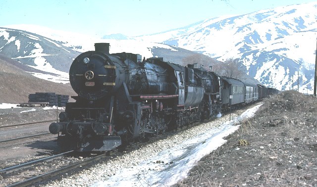 56542 east of Erzincan 27 March 1976. The loco is an oil burning Kriegslok built in 1943 by Florisdorf in Vienna, Austria |