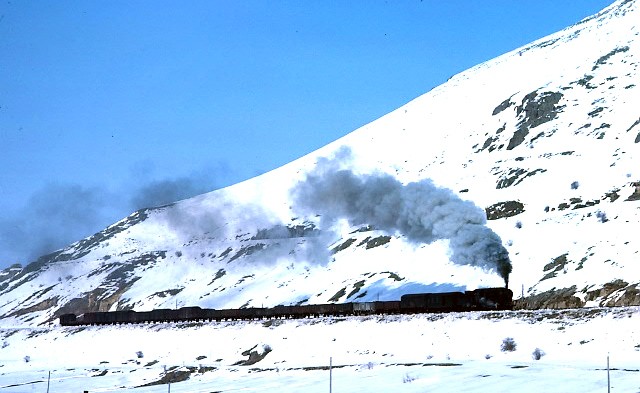 45000 east of Erzurum 26 March 1976. Clearly working very hard with its westbound train |