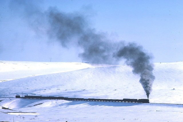 56067 near Tercan 14 March 1977. The final picture of the day and the last of 56000 I have in my files of this train that afternoon, as it catches the low side lighting near Tercan |