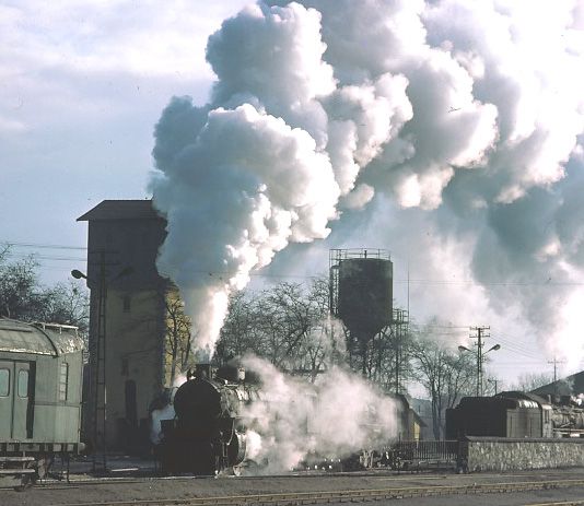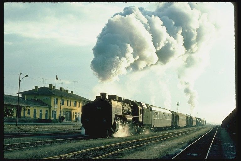 46214 leaving Elazıg 13 March 1977. Finally, with the expected smoke effects, the Tatvan train departed |