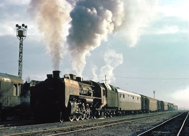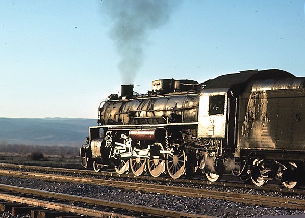 American built 'Middle East' 2-8-2 46233 on an early morning departure from Elazığ 13 March 1977 |