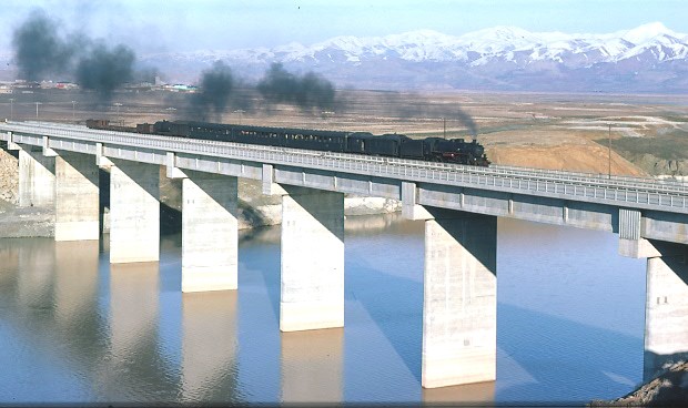 46220 east of Çağlar 24 March 1976. This is the point on the line where the railway and road both cross the River Murat onto the north side on a very modern (at that time) looking bridge. I am aware that the area has since been flooded but did it require much realignment of the railway? |